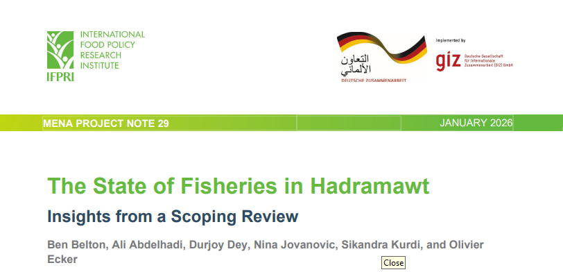 In this project note, we review prior research and integrate insights from 14 semi-structured key informant interviews with experts on fisheries in southern Yemen to synthesize current knowledge on fisheries in Hadramawt governorate—home to the largest population of fishers in Yemen—and identify gaps that warrant further investigation.
