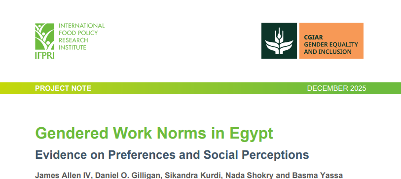 We examine the nature and scope of gendered work norms in Egypt using new experimental evidence from a household survey. Societal norms around work, care responsibilities and the types of jobs women and men can hold can have a profound effect on gender differences in employment, earnings and life satisfaction. Indeed, while lack of childcare and secure transportation remain widely cited constraints to women’s employment in low-income settings, descriptive and experimental evidence also suggest that deeply rooted social norms about gender roles play a prominent role in driving the persistence of such barriers and in how households evaluate women’s work. Norms emphasizing men as primary breadwinners and women as primary caregivers shape both economic decisions and perceptions of behavior in ways that may limit women’s labor force participation even when opportunities exist.